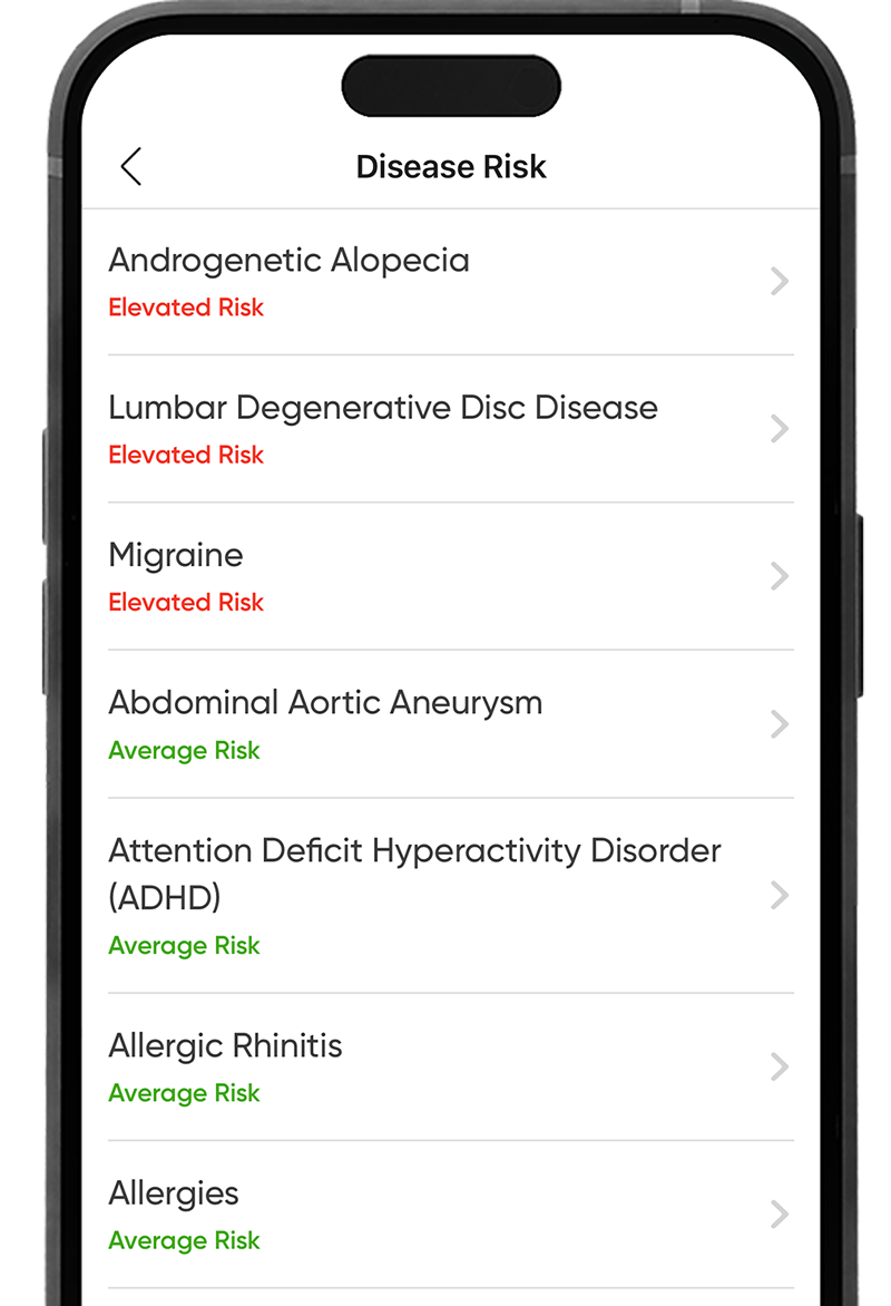 Forewarned is forearmed. Identify predispositions to serious conditions and take science-backed steps to reduce risks before they arise.