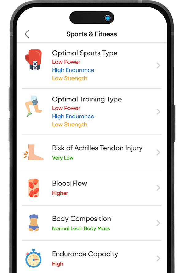 Your results offer science-backed suggestions based on your genetic makeup—such as which workout types may suit you best, or which nutrients require extra attention. While our insights guide your choices, you’re always encouraged to adapt them in collaboration with your healthcare or fitness professionals for the best results.