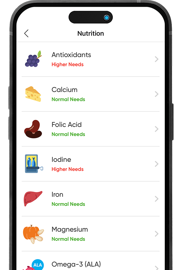 Optimize well-being with targeted insights into vitamins, minerals, and dietary factors unique to your DNA.