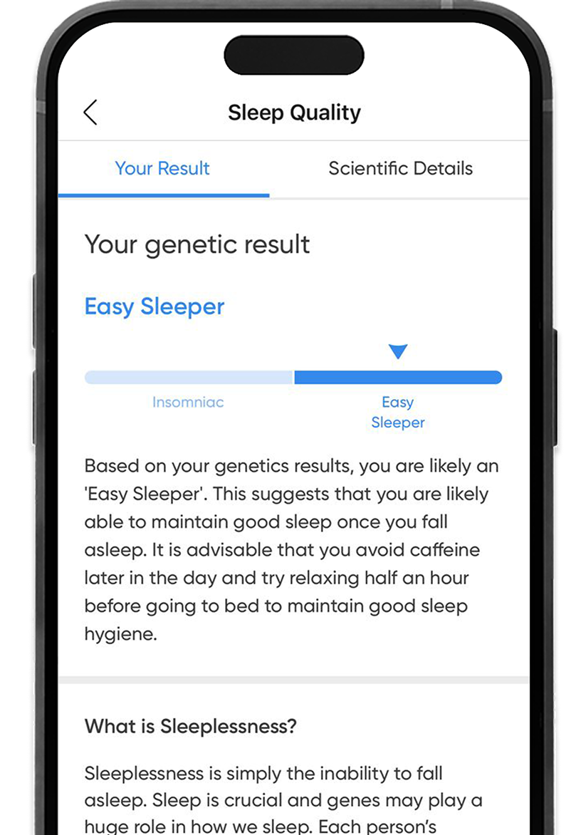 Poor sleep and chronic stress don’t just drain your day—they impact your long-term health. Your DNA reveals personalized insights to optimize rest and resilience, helping you break the cycle.