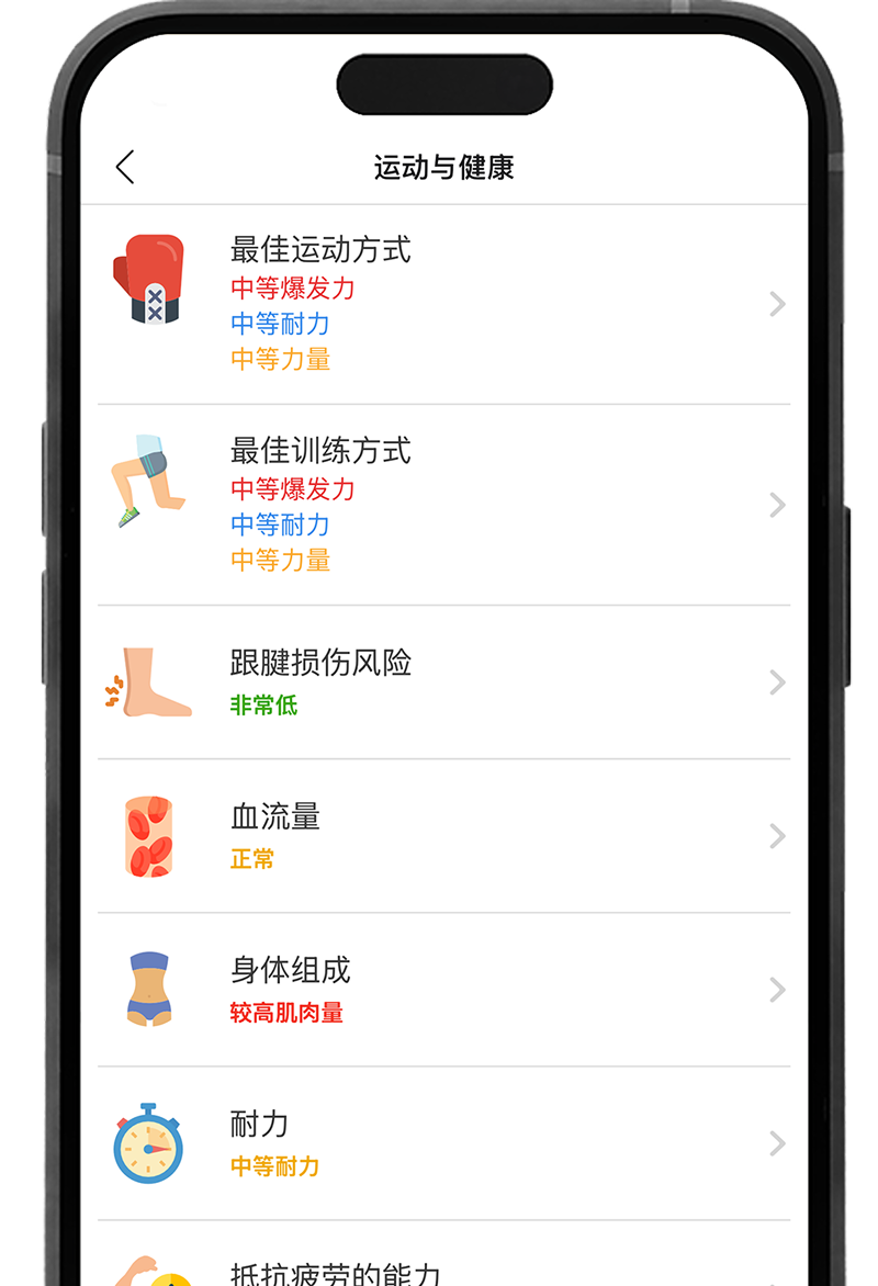 瓶颈与伤患往往源于与体质不匹配的训练方法。您的 DNA 能揭示最适合的运动模式、恢复需求及营养方案,助您「聪明训练」,而非一味苦练。