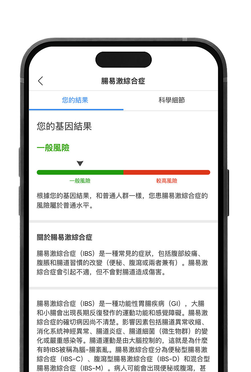 所有報告均包含我們的基因科學團隊及健康專家提供的專業建議,讓您能將基因分析洞察實際運用於日常作息,有效提升健康狀況。