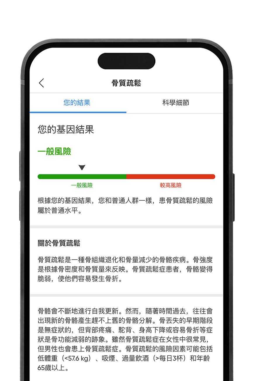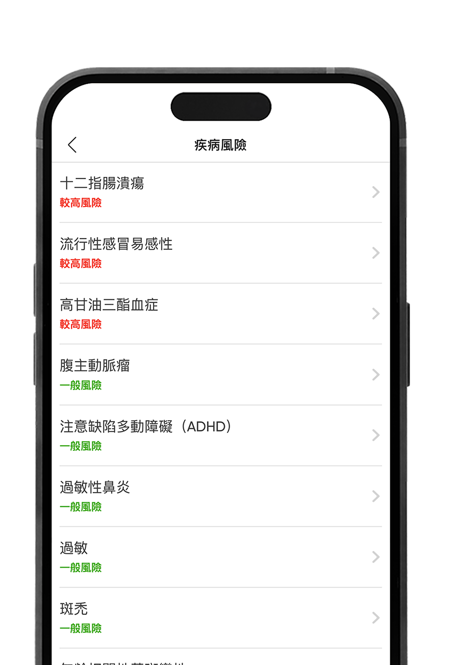 獲得詳細的基因疾病風險評估,以便在生活習慣方面做出明智的決定。
