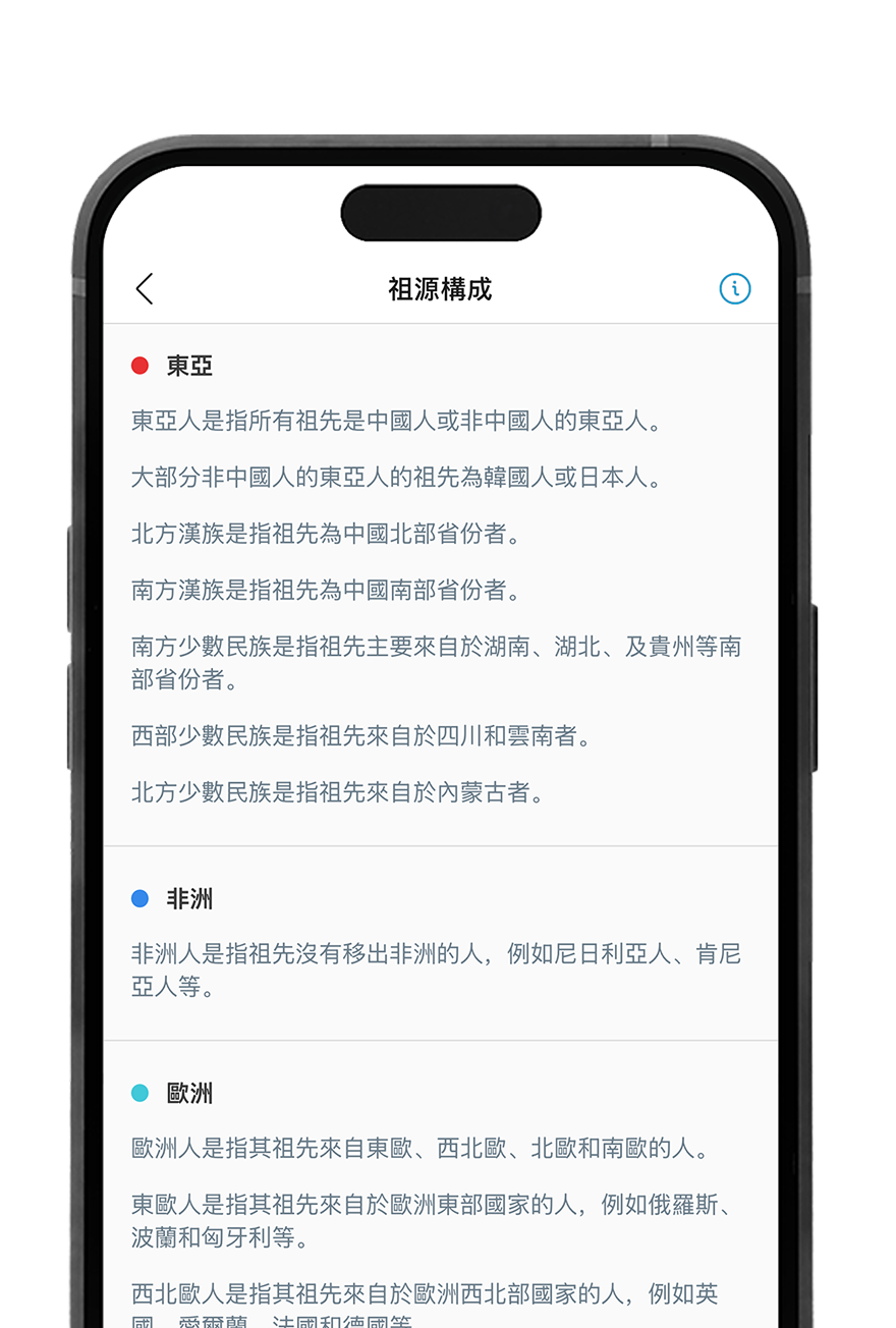 透過 DNA 追溯遷徙足跡、探索族源血脈,與自身傳承重新連結——一次跨越時空的基因之旅,還原您獨一無二的來歷。