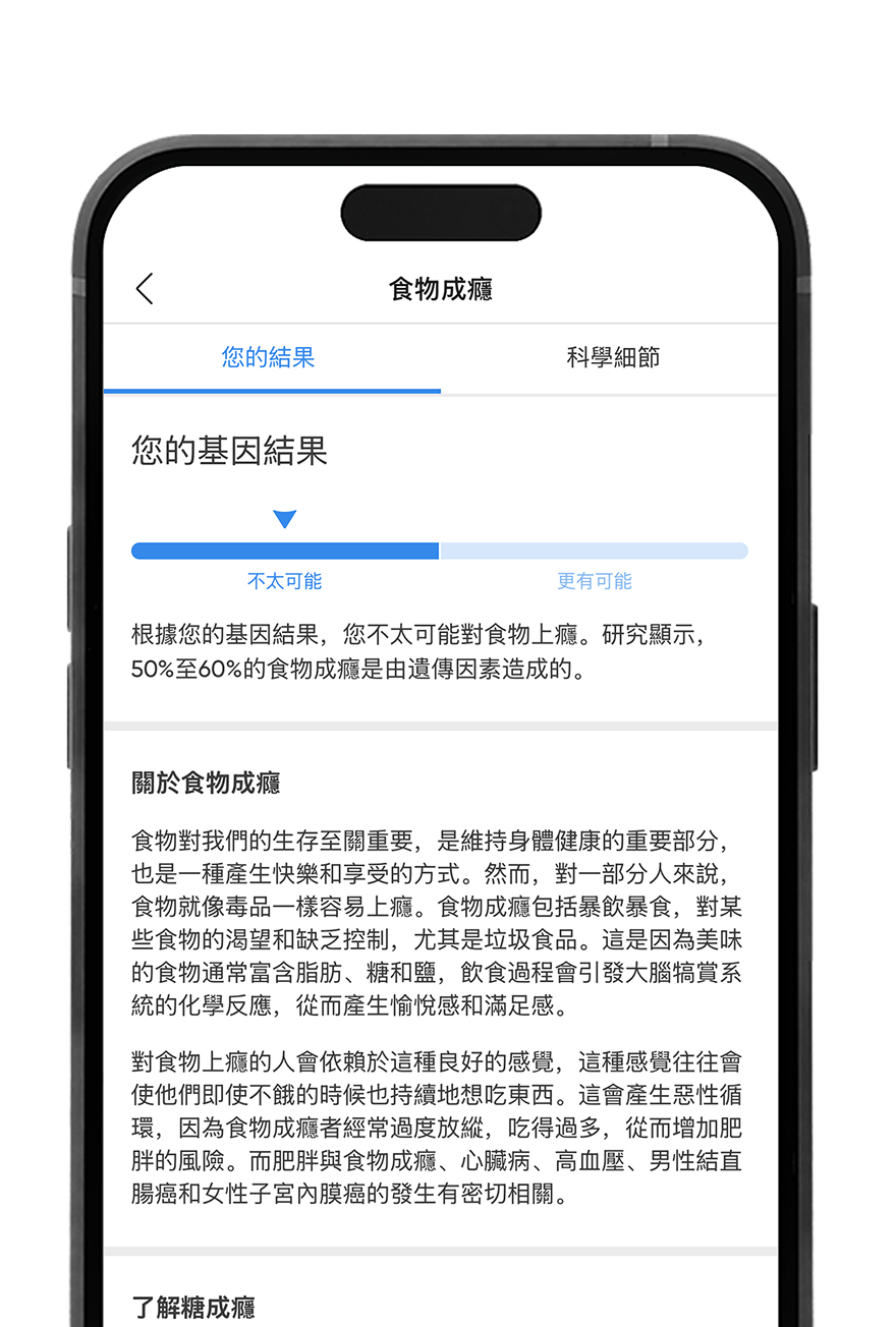 無論是有關飲食、運動還是疾病風險的見解,基因只是拼圖的一部分。環境以及生活方式選擇對基因的表現也有很大影響。例如,您可能有某種疾病的遺傳傾向,但您可以採取積極措施來預防或管理特定症狀。另一方面,您可能在基因上有耐力運動的傾向,但如果沒有適當的訓練,您可能永遠不會成為一名頂尖的跑步健將! CircleDNA 的設計旨在通過更好地了解您的基因來幫助您發揮潛力,但重要的是要記住,由於環境和生活方式因素的影響,您的結果有時可能與您的期望有所不同。