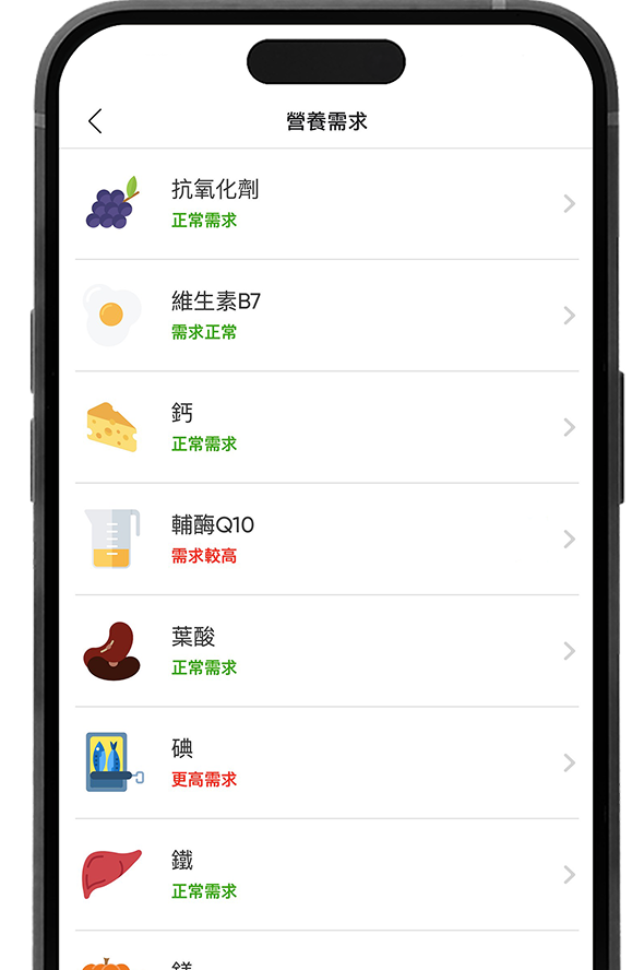 精準掌握維生素、礦物質及其他飲食因子需求。