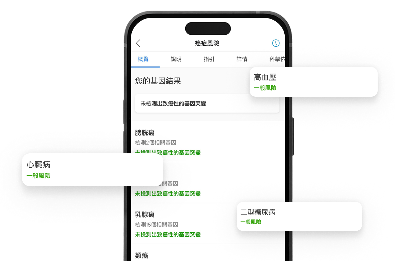 在症狀出現前先行識別遺傳風險標記,及早採取有據可循的行動,奠定終身健康的堅實基礎。
